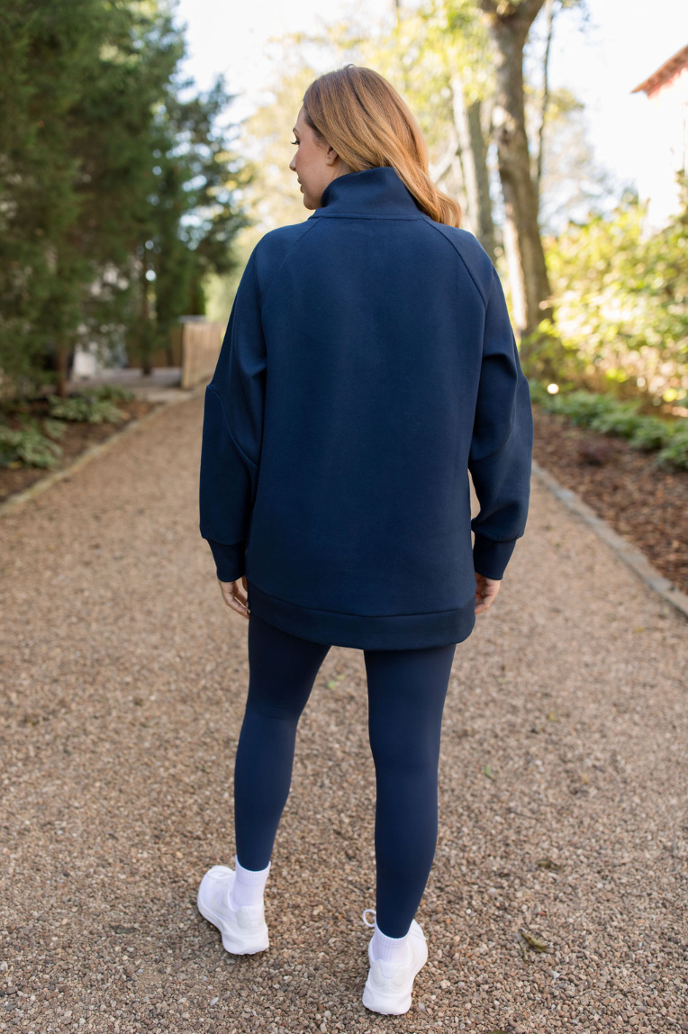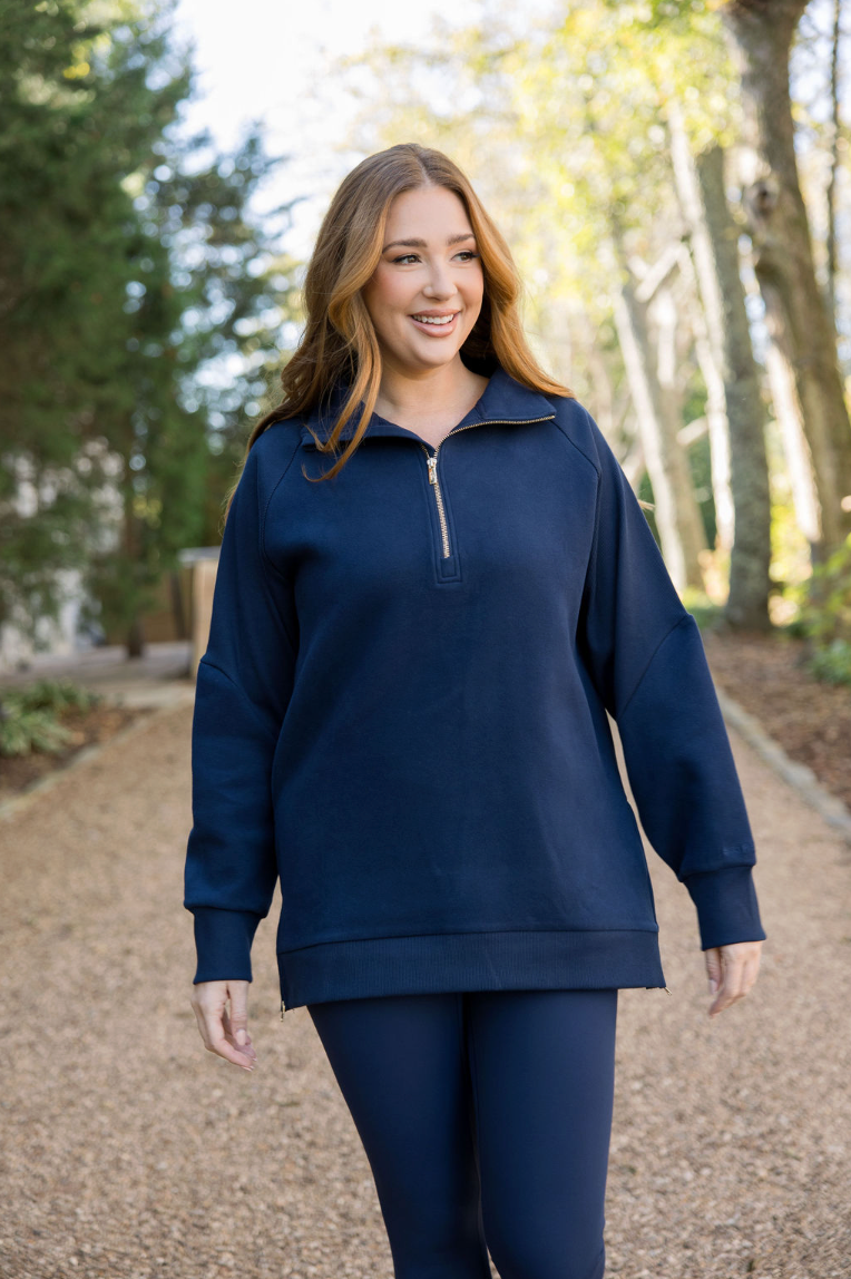 From lounging to layering, this tunic delivers cozy comfort with an elevated touch. Gold zipper details add a hint of shine, while the side zip lets you loosen the fit. Long enough to cover your booty and perfect with leggings, it features a soft sweatshirt body and ribbed sleeves for added texture. Oversized, yet flattering—you’ll reach for it on repeat.