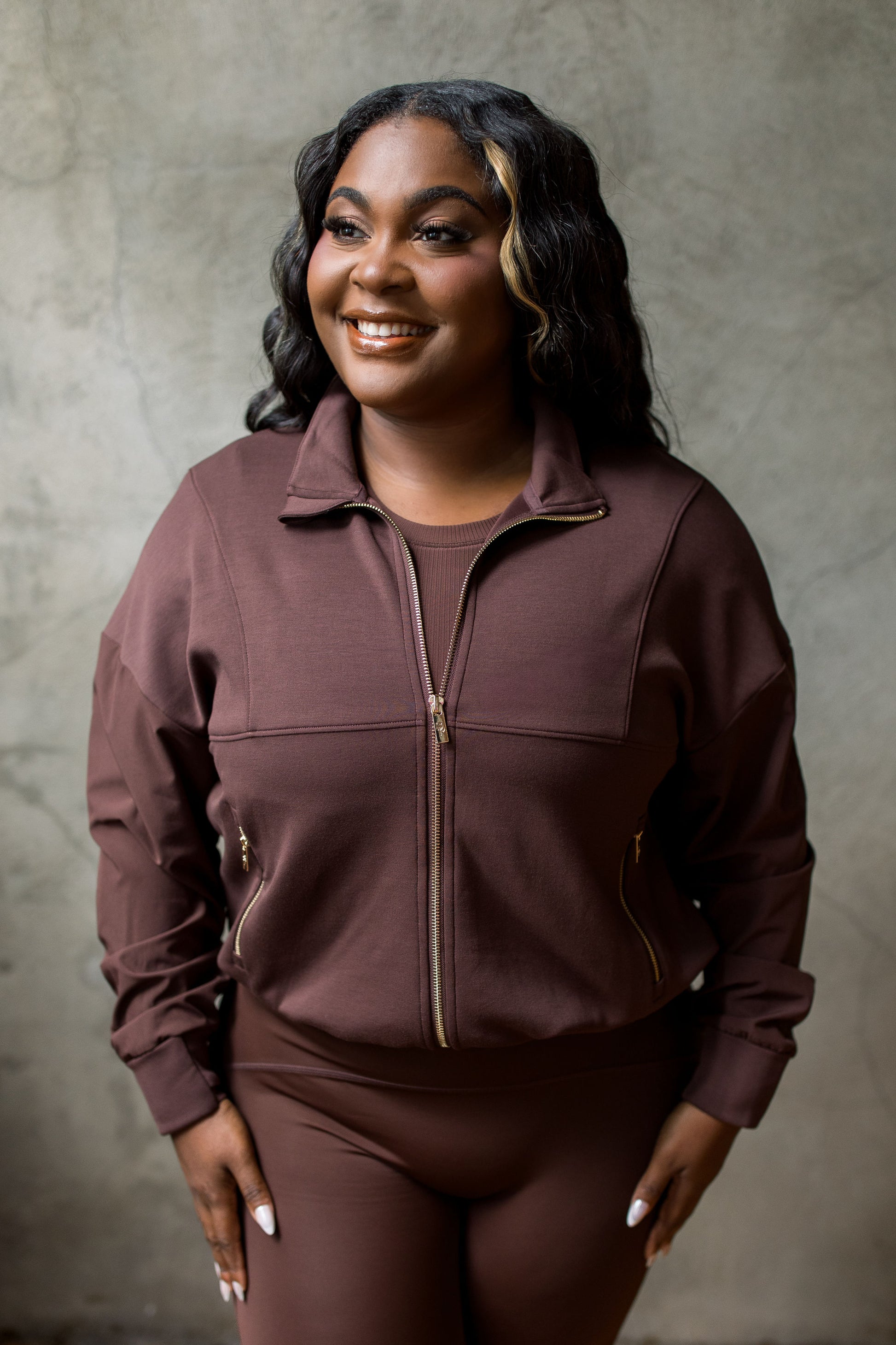 This jacket is perfection! At first I wasn’t sold on it and wasn’t sure I would get as much use out of it but it pairs so well with the chocolate brown set that I had to get it and I’m so glad I did!!!