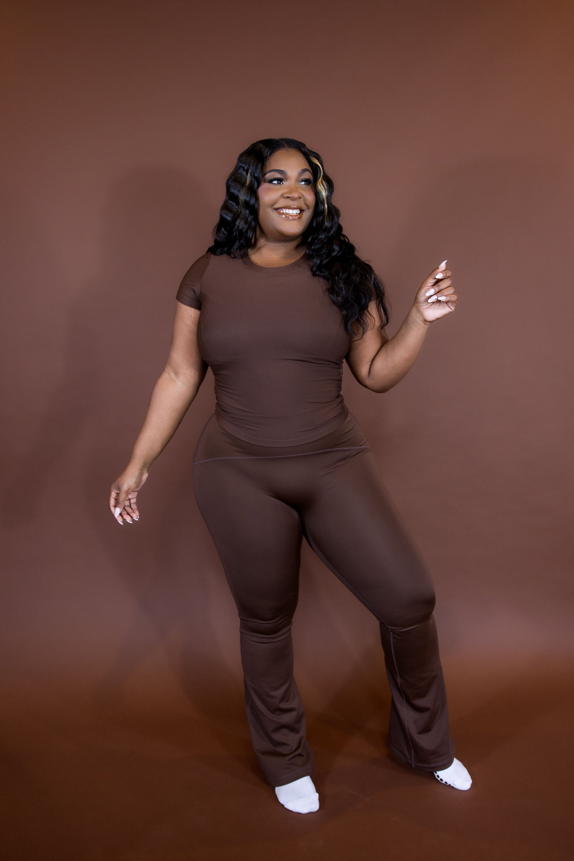 I’ll start off by saying I love SP. I have many pieces and will continue to buy them. I have the periwinkle baby tee and absolutely love it! I did size up in that and love how it fits me. I got the chocolate brown baby tee and sized up again thinking it would be the same fit- the tightness of the shirt itself is the fit I would like, but oddly the bra is so massive. I think I’m going to try to cut it out so that I can wear it with the matching pants. Because as it stands now, it’s so baggy and feels weird.