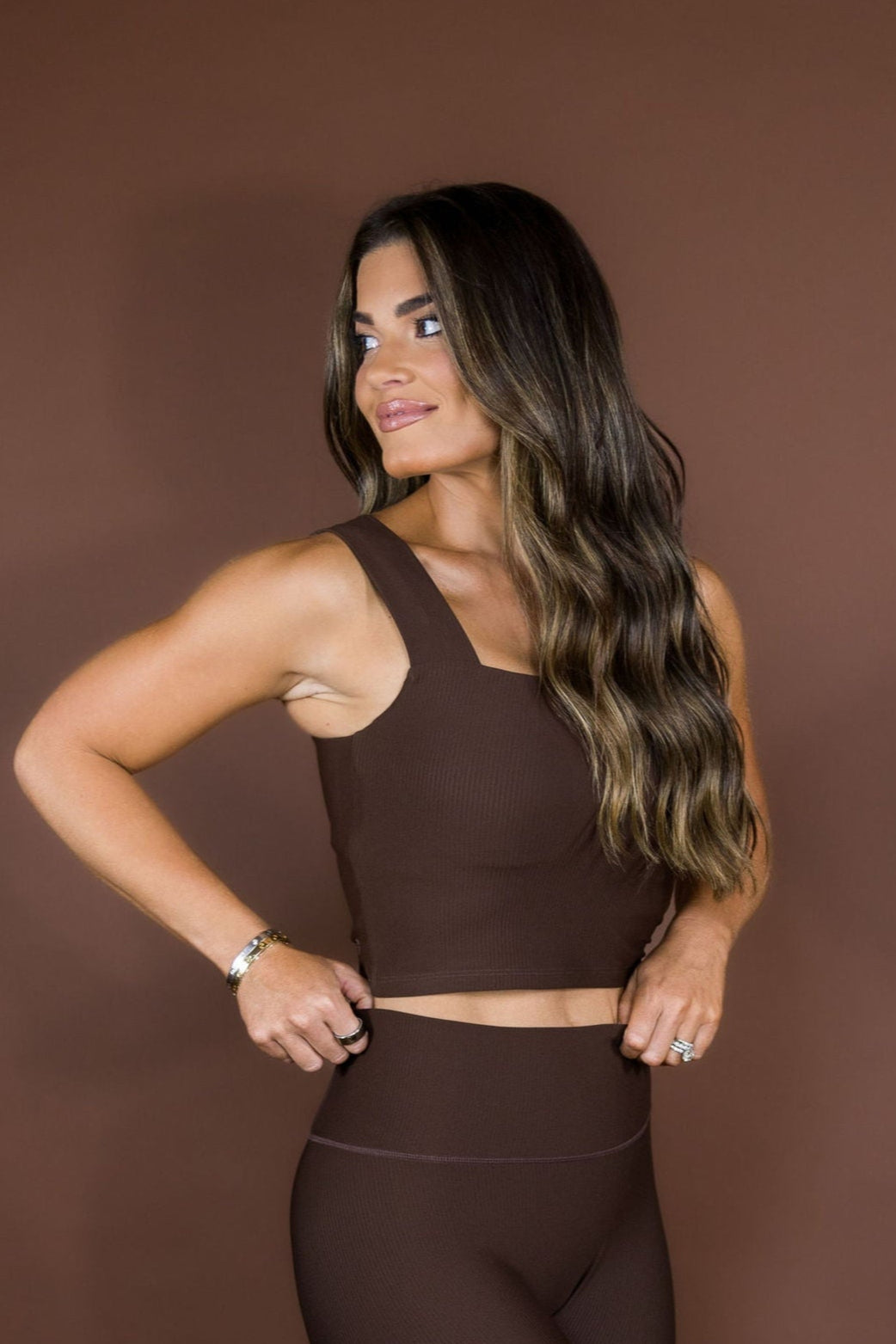 From cardio bursts to strength days, this tank is made to power through it all. The square neckline is very flattering while the built-in bra with sewn-in pads gives you the support you need—without the shifting, bunching, or digging. The length is cropped and it is crafted from a ribbed fabric.