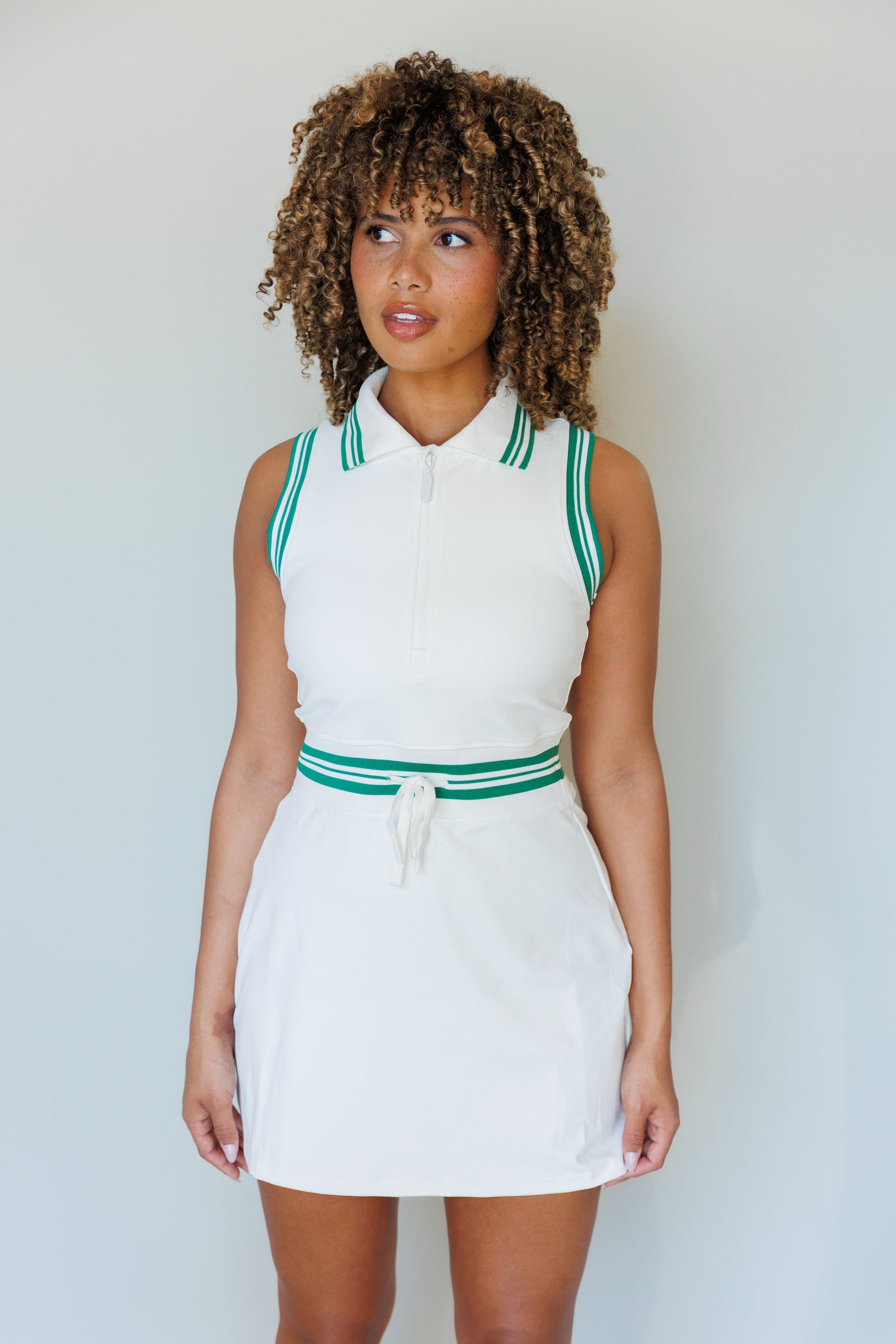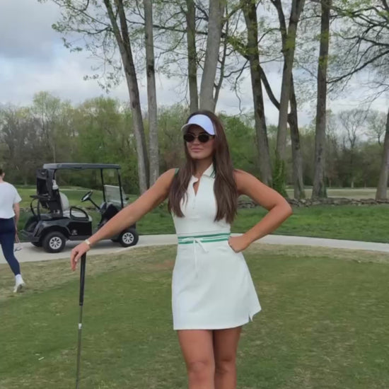 Designed for performance with a refined, country club chic aesthetic, this collared golf dress delivers a polished look while keeping you cool and confident from the first tee to the clubhouse. With its flattering silhouette, sporty zip front, and elevated details, it’s as stylish as it is functional.