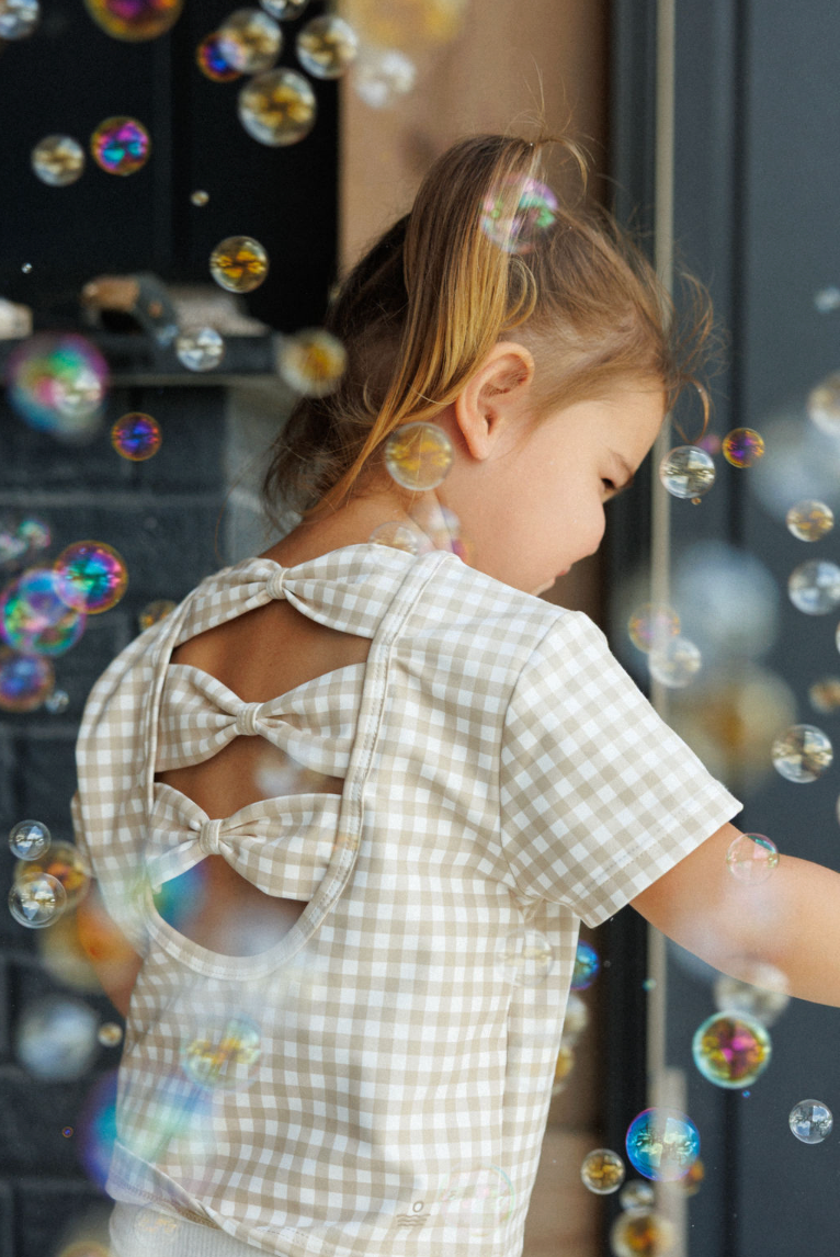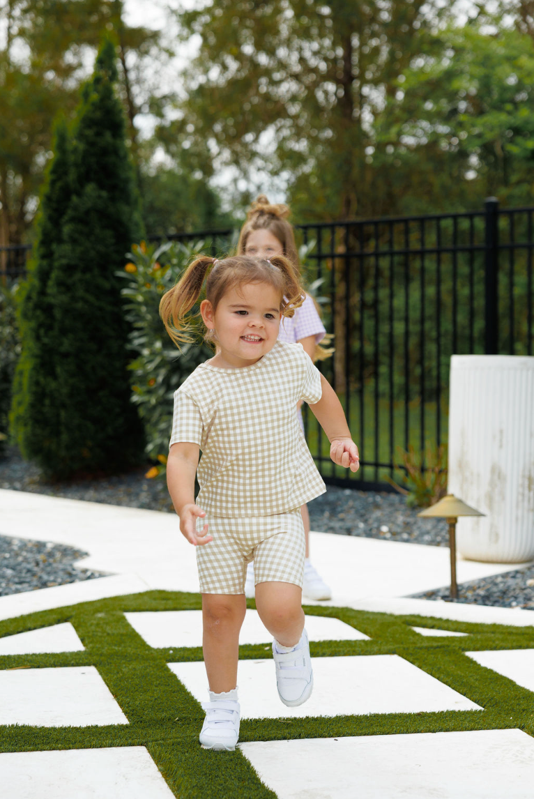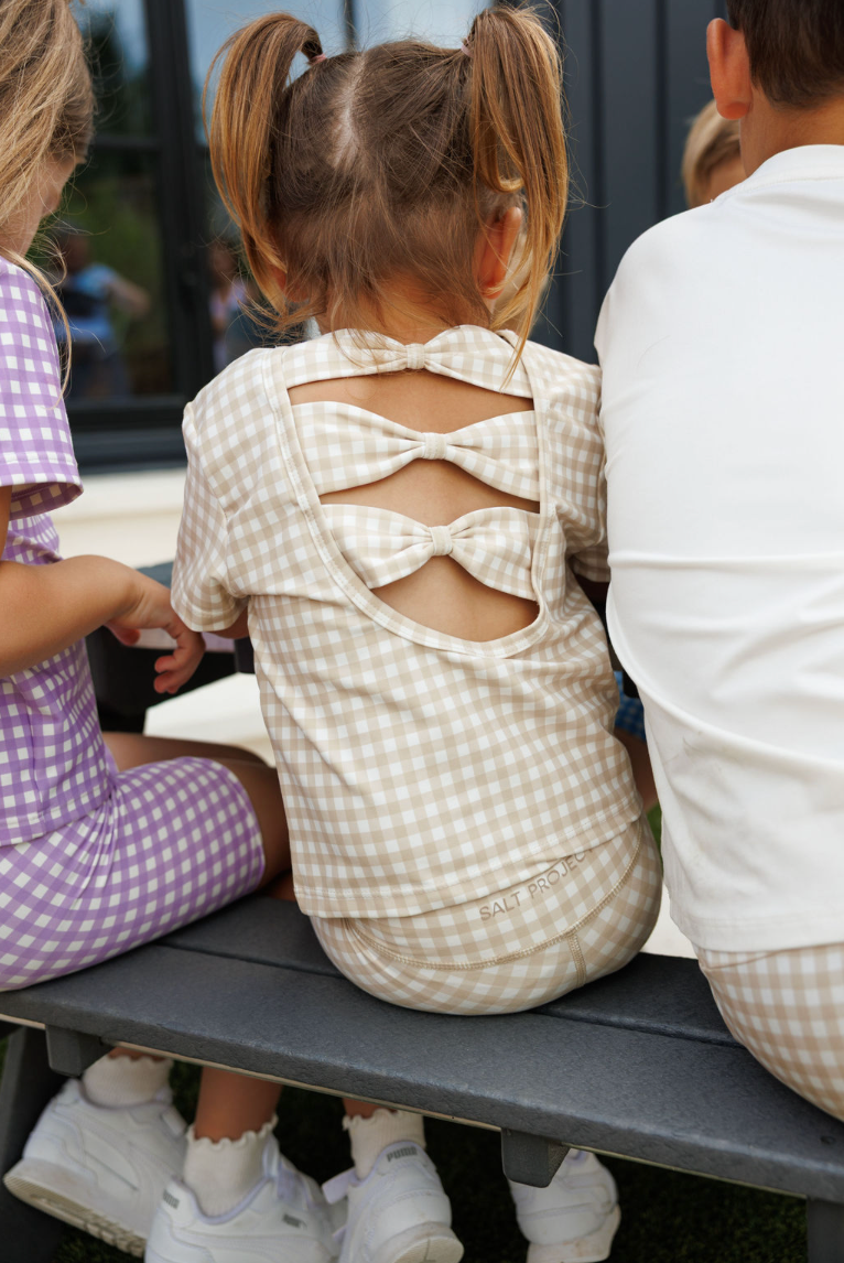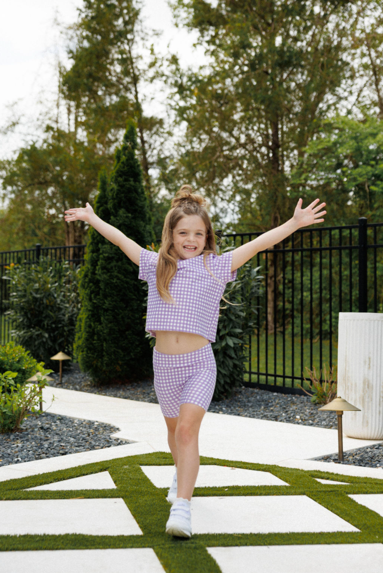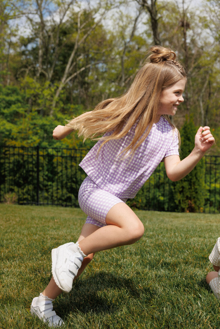 Your new go-to kids biker short set, designed for both play and performance. This matching set features a relaxed-fit top with an open-back detail and double bow accents for a fun, playful touch, paired with fitted biker shorts that stay in place through every adventure.